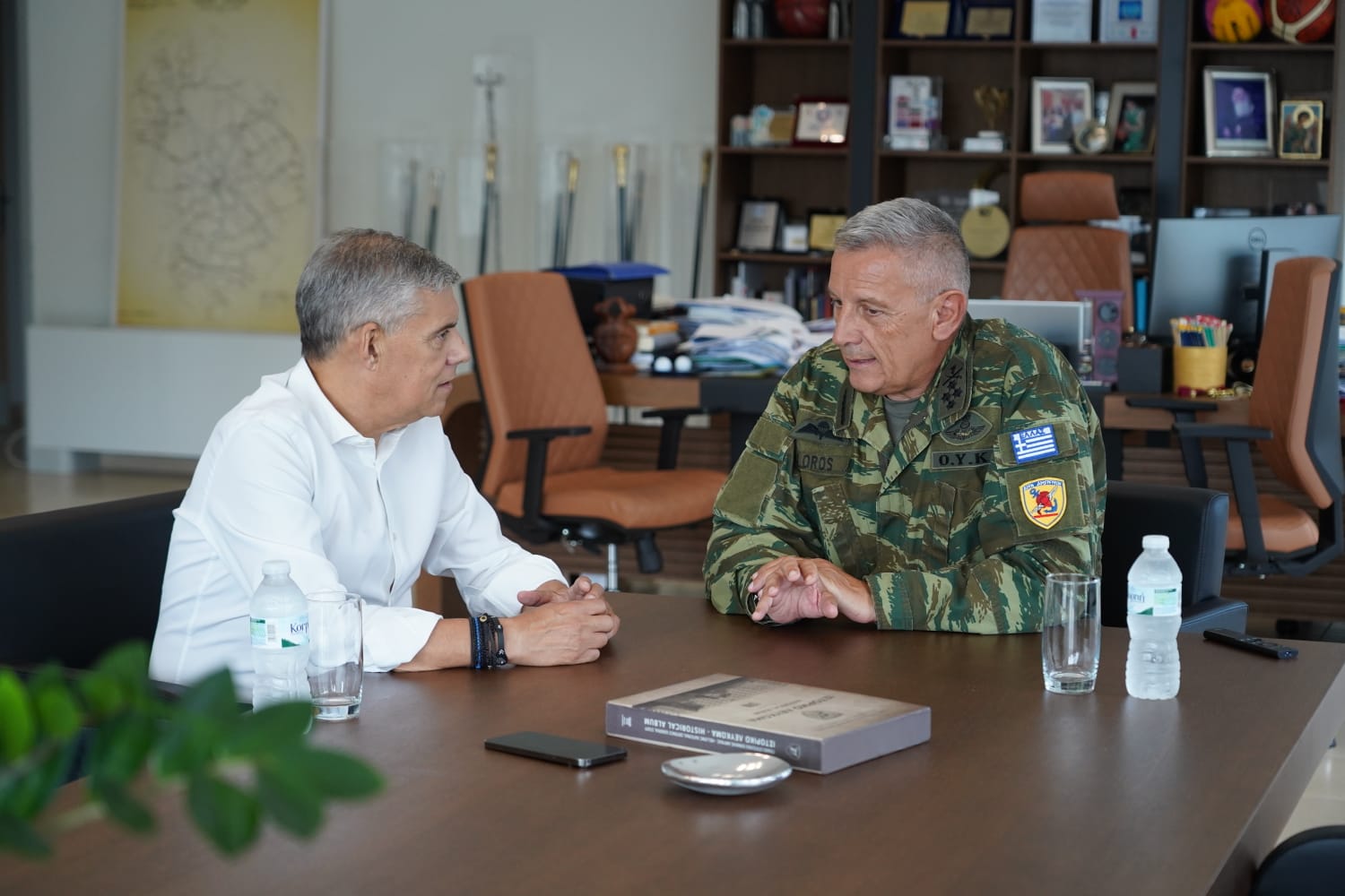 ● Ο Αρχηγός ΓΕΑ Αντιπτέραρχος (Ι) Θεμιστοκλής Μπουρολιάς και o Αρχηγός ΓΕΣ Αντιστράτηγος Άγγελος Χουδελούδης.