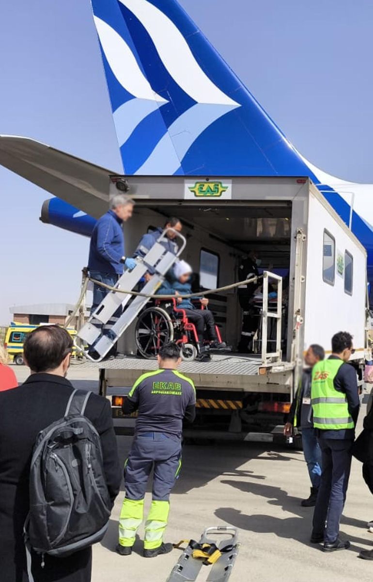 Κατόπιν σχετικού αιτήματος του Υπουργείου Εξωτερικών προς το Υπουργείο Υγείας, ενεργοποιήθηκε ο μηχανισμός υγειονομικής υποστήριξης και επιχειρησιακού συντονισμού μέσω του Κέντρου Επιχειρήσεων Υγείας του ΕΚΑΒ (ΚΕΠΥ-ΕΚΑΒ), διασφαλίζοντας τις συνθήκες για την άμεση και αποτελεσματική πραγματοποίηση της αεροδιακομιδής.