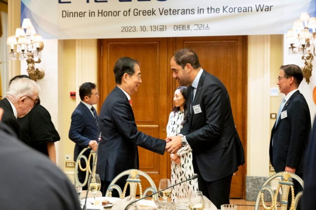 Ο Υφυπουργός Εθνικής Άμυνας Ιωάννης Κεφαλογιάννης παρέστη την Παρασκευή 13 Οκτωβρίου 2023, στην κατάθεση στεφάνου από τον Πρωθυπουργό της Δημοκρατίας της Κορέας κ. Duck-soo Han στην μνήμη των Βετεράνων του Πολέμου της Κορέας και στη συνέχεια παρακάθησε στο δείπνο που παρέθεσε ο Κορεάτης Πρωθυπουργός προς τιμήν αυτών.