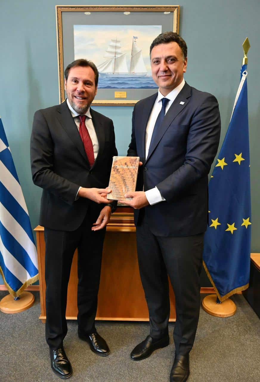 Με τον Υπουργό Μεταφορών και Βιώσιμης Κινητικότητας της Ισπανίας, Oscar Puente, συναντήθηκε χθες ο Υπουργός Ναυτιλίας και Νησιωτικής Πολιτικής, Βασίλης Κικίλιας, παρουσία και του Πρέσβη της Ισπανίας στην Ελλάδα, Jorge Domecq.