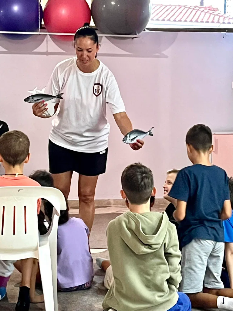 Στο θεωρητικό κομμάτι η συντονίστρια του προγράμματος «Ανοίγουμε Πανιά», Υποπλοίαρχος ΛΣ Μενελάου Καλλιόπη παρουσίασε ένα πρόγραμμα ευαισθητοποίησης των παιδιών για το θαλάσσιο περιβάλλον, το οποίο έχει σχεδιαστεί με την συμβολή του Γενικού Γραμματέα Ναυτιλίας & Λιμένων κ. Ευάγγελο Κυριαζόπουλο. Το πρόγραμμα αυτό παρουσιάζει σε παιγνιώδη μορφή τα ψάρια που μπορούν να συναντήσουν τα παιδιά στα ρηχά νερά κολυμπώντας με τις μάσκες τους, τα ιδιαίτερα χαρακτηριστικά αυτών των ψαριών και πως μπορούμε να τα προστατέψουμε και κατ’ επέκταση πως μπορούμε να ζήσουμε καλύτερα μη διαταράσσοντας την φυσική αρμονία.