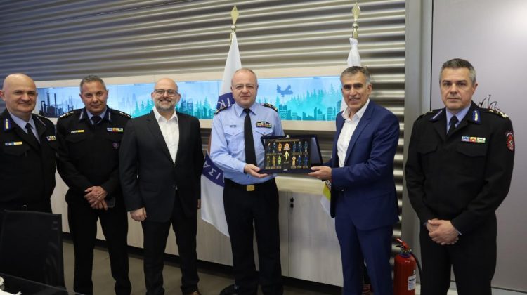 O Αρχηγός του Πυροσβεστικού Σώματος Αντιστράτηγος Θεόδωρος Βάγιας, υποδέχθηκε τον Διευθυντή της εταιρείας Digital Tribes κ. Θωμά Κολοκύθα και τον Εμπορικό Διευθυντή της Tomako Group κ. Άρη Μάρκο, παρουσία του Επιτελάρχη Π.Σ. Αντιστράτηγου Αθανάσιου Μπαλάφα, του Προϊσταμένου Κλάδου Πυροσβεστικών Επιχειρήσεων Υποστράτηγου Αλέξανδρου Μαυραγάνη και του Διευθυντή Στρατηγικού Σχεδιασμού, Αρχιπύραρχου Παναγιώτη Μπαλτά.