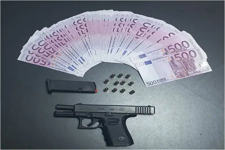 Κατασχέθηκαν πιστόλι, 11 φυσίγγια, μαχαίρι, 2.580 ευρώ και 9 κινητά