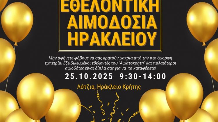 Εθελοντική αιμοδοσία στο Ηράκλειο Κρήτης, σήμερα Σάββατο 25-10-2025
