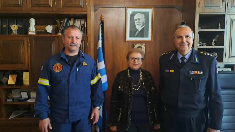 Από την πλευρά του, ο κ. Σεληνιωτάκης ευχαρίστησε την κα Λιονή για τη θερμή υποδοχή και τόνισε τη σημασία της συνεργασίας μεταξύ της Πυροσβεστικής Υπηρεσίας και της Τοπικής Αυτοδιοίκησης, ιδιαίτερα σε θέματα πρόληψης και αντιμετώπισης κινδύνων, με στόχο την προστασία της ανθρώπινης ζωής, του φυσικού περιβάλλοντος και της περιουσίας των πολιτών.
