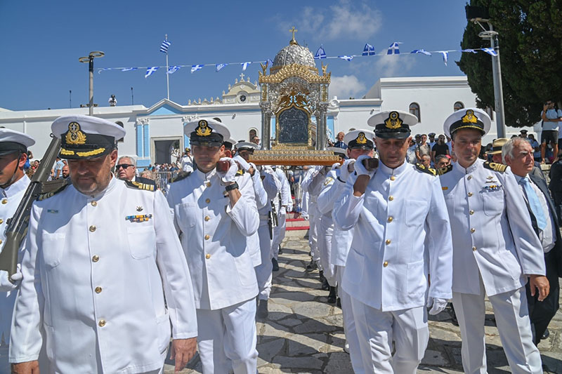 Επιπρόσθετα, κατά την διεξαγωγή των λιτανεύσεων των εικόνων σε αμφότερες ανωτέρω νήσους, αποδόθηκαν τιμές από ένοπλα αγήματα προσωπικού και τμημάτων της Μπάντας του ΠΝ.
