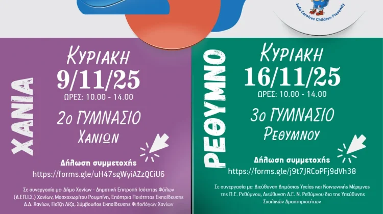 Κυριακή 9 Νοεμβρίου 2025, 10:00–14:00, 2ο Γυμνάσιο Χανίων.
