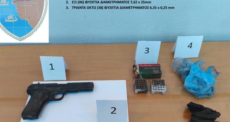 Αμέσως, στελέχη Λ.Σ.-ΕΛ.ΑΚΤ. μετέβησαν στο σημείο, όπου εντόπισαν το αντικείμενο, επιμελώς τυλιγμένο σε κάλτσα και το περισυνέλλεξαν. Κατόπιν ελέγχου διαπιστώθηκε ότι πρόκειται για ένα πιστόλι, πιθανόν μάρκας ‘’TOKAREV’’ μοντέλου ΤΤ-33 με γεμιστήρα, το οποίο παρουσίαζε έντονες οξειδώσεις και στοιχεία πολυκαιρισμού.