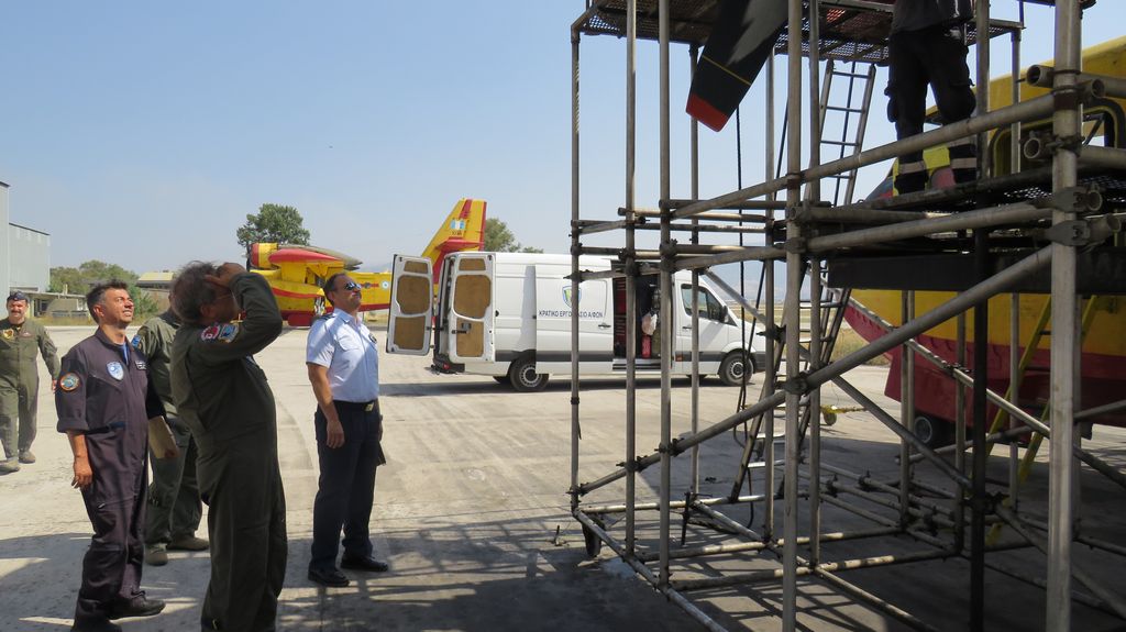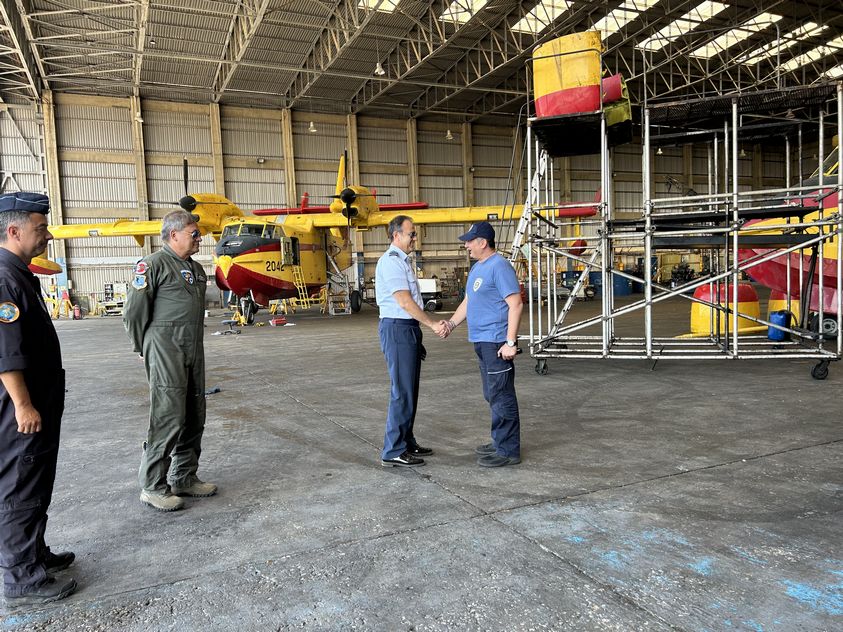 Κατά τη διάρκεια της επίσκεψής του, ο Αρχηγός, ενημερώθηκε για τα τρέχοντα θέματα των Μοιρών Αεροπυρόσβεσης, επισκέφθηκε την 355 Μοίρα Τακτικών Μεταφορών (CL-215), το Κλιμάκιο της 383 Μοίρας Ειδικών Επιχειρήσεων και Αεροπυρόσβεσης (CL-415), το ιταλικό και το γαλλικό Κλιμάκιο (CL-415) που έχουν μετασταθμεύσει στην 112ΠΜ και τη Μοίρα Συντήρησης Αεροσκαφών, όπου συνομίλησε με το προσωπικό τους και ενημερώθηκε για τις αποστολές αεροπυρόσβεσης και το έργο συντήρησης των πυροσβεστικών αεροσκαφών.