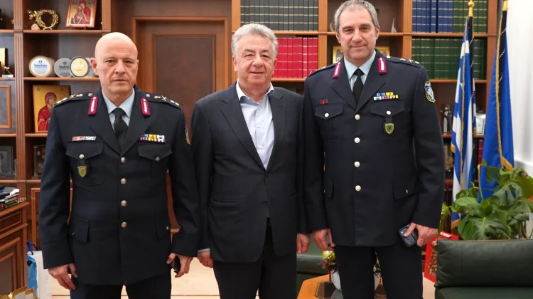Ο νέος Γενικός Περιφερειακός Αστυνομικός Διευθυντής Κρήτης Υποστράτηγος Γεώργιος Δούκης και ο νέος Αστυνομικός Διευθυντής Ηρακλείου Ταξίαρχος Παρασκευάς Χηνόπουλος επισκέφθηκαν χθες Πέμπτη τον Περιφερειάρχη Κρήτης Σταύρο Αρναουτάκη.