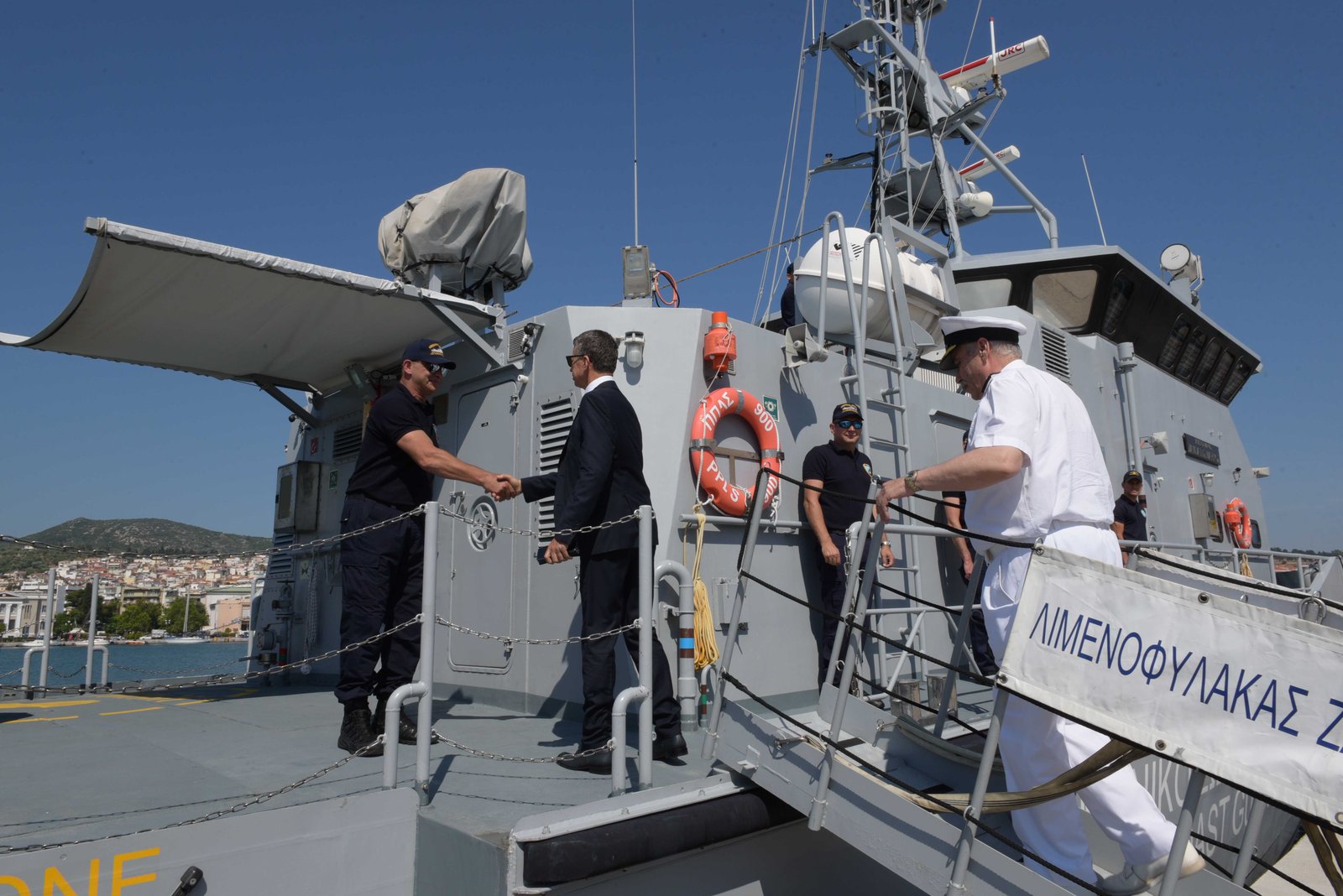 Ο Υπουργός Ναυτιλίας και Νησιωτικής Πολιτικής κ. Θοδωρής Κλιάρης και ο Αρχηγός του Λιμενικού Σώματος – Ελληνικής Ακτοφυλακής, Αντιναύαρχος Λ.Σ. Γεώργιος Αλεξανδράκης, πραγματοποίησαν επίσκεψη στη νήσο Λέσβο, την Τετάρτη 07 Ιουνίου 2023, συνοδευόμενοι από τον Διευθυντή του Κλάδου Ασφάλειας και Αστυνόμευσης του Αρχηγείου Λ.Σ. – ΕΛ.ΑΚΤ., Υποναύαρχο Λ.Σ. Κοντιζά Τρύφωνα.