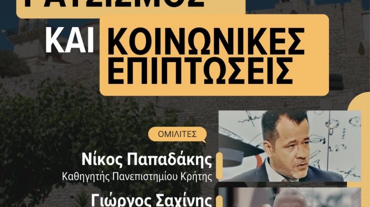 Μία πολύ ενδιαφέρουσα εκδήλωση αναμένεται στον Άγιο Μύρωνα Κρήτης, την Τρίτη 16 Δεκεμβρίου 2025 και ώρα 5:00 μ.μ., με θέμα «Ηλικιακός ρατσισμός και κοινωνικές επιπτώσεις».