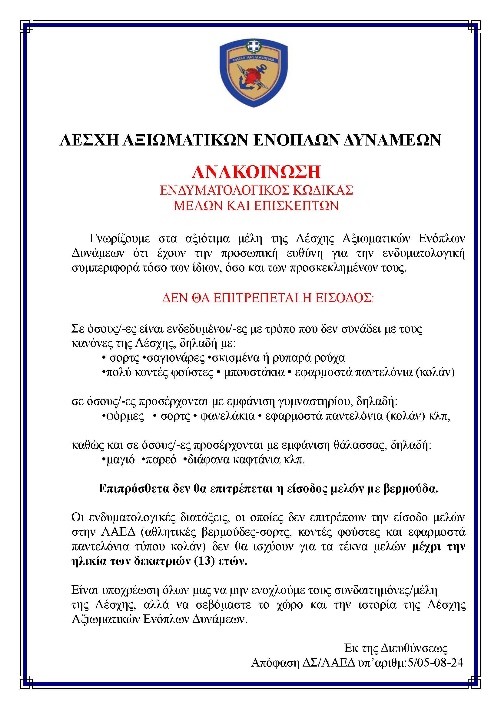 ΛΑΕΔ – Ενδυματολογικός κώδικας μελών και επισκεπτών Μαρ 2, 2026 Share on FacebookPost on XFollow usSave
