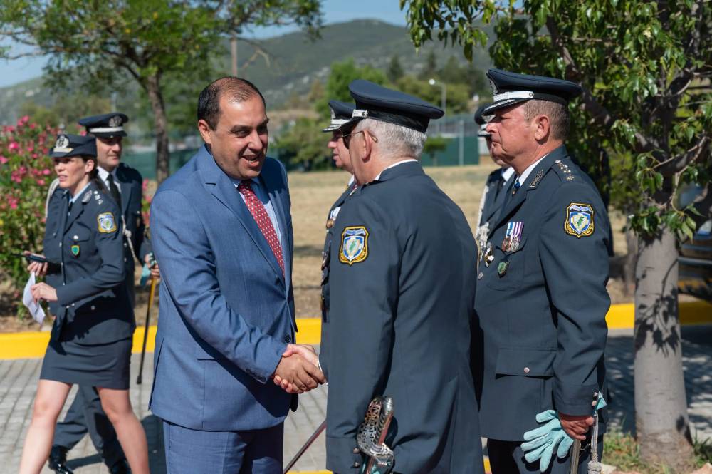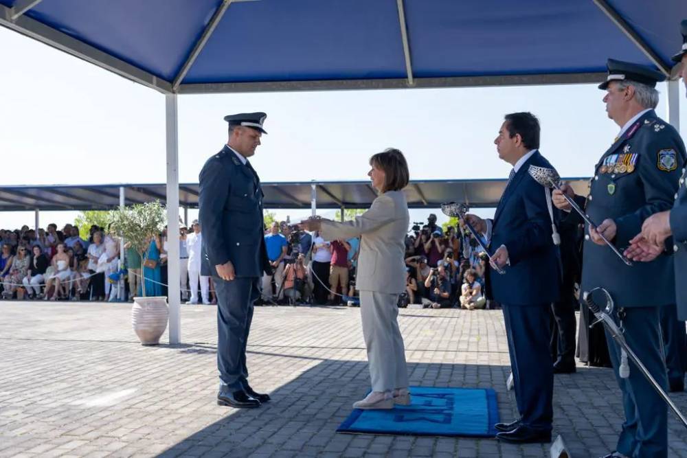 Τα ξίφη στους νέους Αξιωματικούς επέδωσε η Α.Ε. η Πρόεδρος της Ελληνικής Δημοκρατίας Αικατερίνη Σακελλαροπούλου, παρουσία του Υπουργού Προστασίας του Πολίτη Νότη Μηταράκη, ως εκπροσώπου της Κυβέρνησης, του Υφυπουργού Προστασίας του Πολίτη Κωνσταντίνου Κατσαφάδου, του Γενικού Γραμματέα Δημοσίας Τάξης Μιχαήλ Καραμαλάκη, του Γενικού Γραμματέα Αντεγκληματικής Πολιτικής Κωνσταντίνου Παπαθανασίου και του Αρχηγού της Ελληνικής Αστυνομίας, Αντιστράτηγου Λάζαρου Μαυρόπουλου.