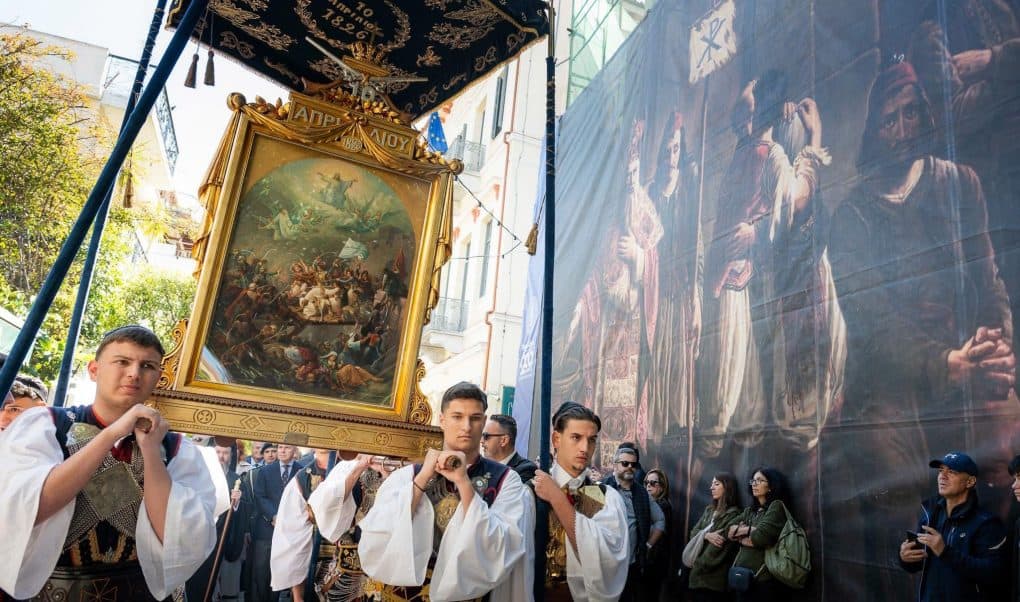 Στη συνέχεια, μετέβη στο μουσείο Ιστορίας και Τέχνης – Πινακοθήκη από όπου έγινε η μεταφορά της Εικόνας της Εξόδου, του Ιερού Λάβαρου, του Τίμιου Σταυρού του Επισκόπου Ρωγών και Κοζύλης, Ιωσήφ και του καριοφιλιού του στρατηγού, Δημητρίου Μακρή στον Ιερό Μητροπολιτικό Ναό του Αγίου Σπυρίδωνος. Ακολούθως, παρακολούθησε τον Μέγα Πανηγυρικό Πολυαρχιερατικό Εσπερινό, χοροστατούντος του Σεβασμιωτάτου Μητροπολίτου Πατρών Χρυσοστόμου, συμμετείχε στην πομπή προς τον Κήπο των ηρώων, σε ανάμνηση της Εξόδου των Ελευθέρων Πολιορκημένων, ενώ παρέστη στην επιμνημόσυνη δέηση και κατέθεσε στεφάνι.