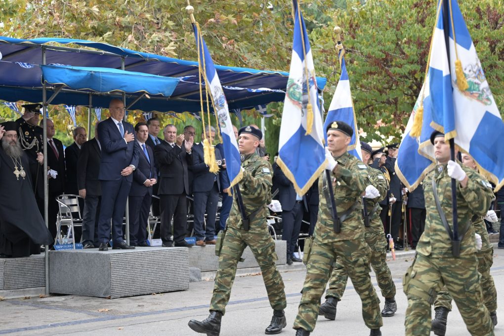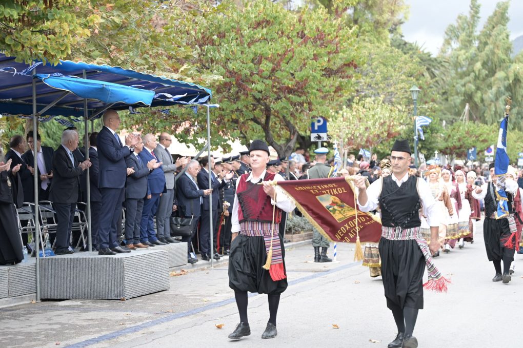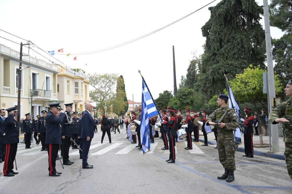 Στην συνέχεια, ο κ. Δένδιας παρακολούθησε την παρέλαση τμημάτων της 96 ΑΔΤΕ, όπως και της Στρατιωτικής Μπάντας της, Εθνοφυλάκων, μαθητών της πρωτοβάθμιας και δευτεροβάθμιας εκπαίδευσης, σπουδαστών Ακαδημίας Εμπορικού Ναυτικού Μηχανικών Χίου, μελών συλλόγων κ.ά.