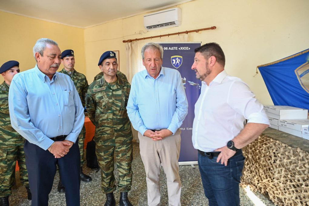 Ο Υφυπουργός Εθνικής Άμυνας κ. Νικόλαος Χαρδαλιάς, πραγματοποίησε χθες, Κυριακή 27 Αυγούστου 2023, επισκέψεις στα Επιτηρητικά Φυλάκια (ΕΦ) «Οινουσσών» και «Παναγιάς», στην Περιφερειακή Ενότητα Χίου, συνοδευόμενος από τον Διοικητή της 96 Ανώτερης Διοίκησης Ταγμάτων Εθνοφυλακής, Ταξίαρχο Χαράλαμπο Αμπατζίδη.