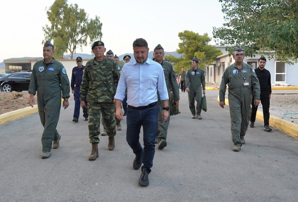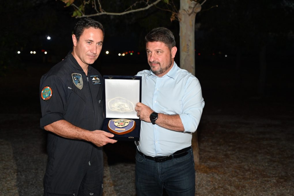 Αρχικά, ο Υφυπουργός Εθνικής Άμυνας επισκέφθηκε την 355 ΜΤΜ, όπου ενημερώθηκε από τον Διοικητή της, Αντισμήναρχο (Ι) Ηλία Βελούδο, για το πτητικό έργο της. Ακολούθως, μίλησε σε ιπτάμενους, μηχανικούς και στελέχη της 355 ΜΤΜ και σε κλιμάκιο στελεχών της 383 Μοίρας Ειδικών Επιχειρήσεων & Αεροπυρόσβεσης, μεταφέροντας τη βαθιά ευγνωμοσύνη της Πολιτικής Ηγεσίας του Υπουργείου Εθνικής Άμυνας, αλλά και ολόκληρης της ελληνικής κοινωνίας, για τη γενναιότητα, την αυταπάρνηση και το απαράμιλλο θάρρος κατά την εκτέλεση των καθηκόντων τους στη διεξαγωγή πολυάριθμων επιχειρήσεων αεροπυρόσβεσης στα μέτωπα των πυρκαγιών, κάτω από εξαιρετικά δύσκολες, επικίνδυνες και πολλές φορές απρόσμενες συνθήκες, αλλά και ποικίλες άλλες αποστολές προσφοράς από αέρος στο κοινωνικό σύνολο με τα αεροσκάφη Canadair CL-215 και CL-415.