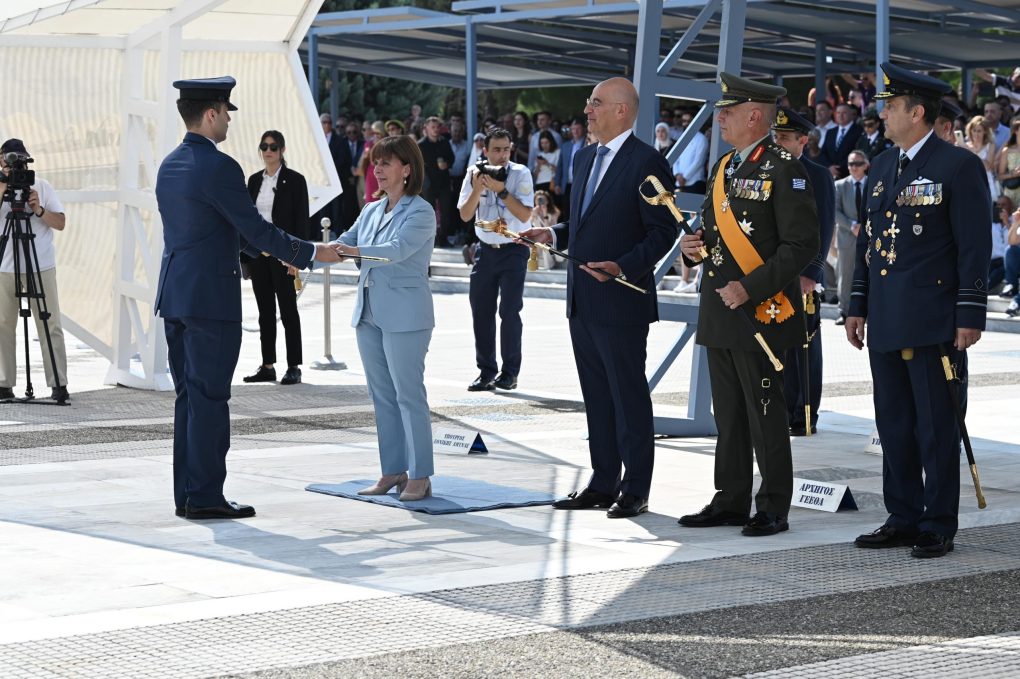 Τα ξίφη στους νέους Αξιωματικούς της Πολεμικής Αεροπορίας επέδωσε η Πρόεδρος της Δημοκρατίας κ. Κατερίνα Σακελλαροπούλου.
