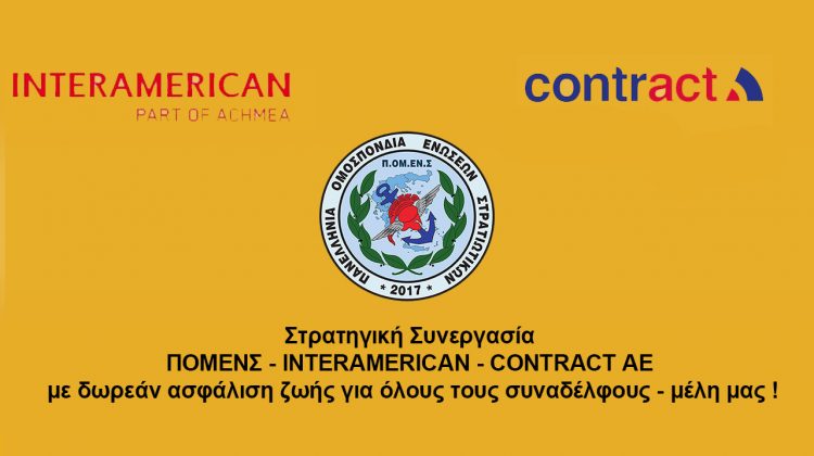 Στρατηγική Συνεργασία ΠΟΜΕΝΣ – ΙΝΤΕRAMERICAN – CONTRACT AE με δωρεάν ασφάλιση ζωής για όλους τους συναδέλφους – μέλη μας !