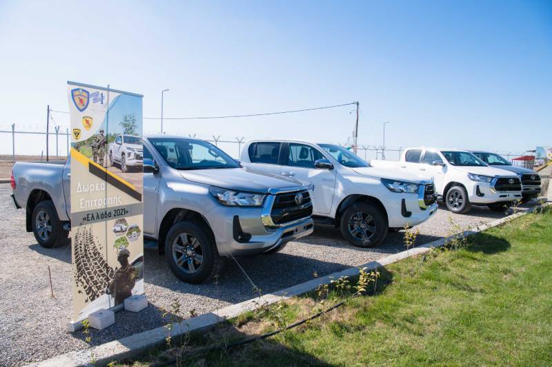 Επίσης, πραγματοποιήθηκε η παράδοση 4 οχημάτων μεταφοράς προσωπικού παντός εδάφους, τα οποία αποτελούν τμήμα της δωρεάς 20 οχημάτων από την Επιτροπή «Ελλάδα 2021» προς το Γενικό Επιτελείο Στρατού. Η παραλαβή των υπόψη οχημάτων αναβαθμίζει την ικανότητα επιτήρησης των συνόρων.
