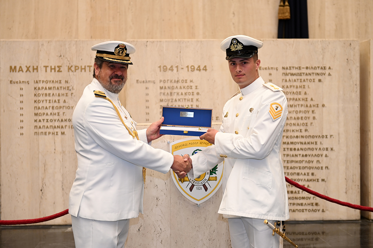 Τέλος ο Ισπανός Ακόλουθος Άμυνας (ΑΚΑΜ) Πλοίαρχος Federico Antonio Garcia Castro απένειμε το ξιφίδιο του Ισπανικού Στρατού στον πρωτεύσαντα Εύελπι της Τάξης 2023.