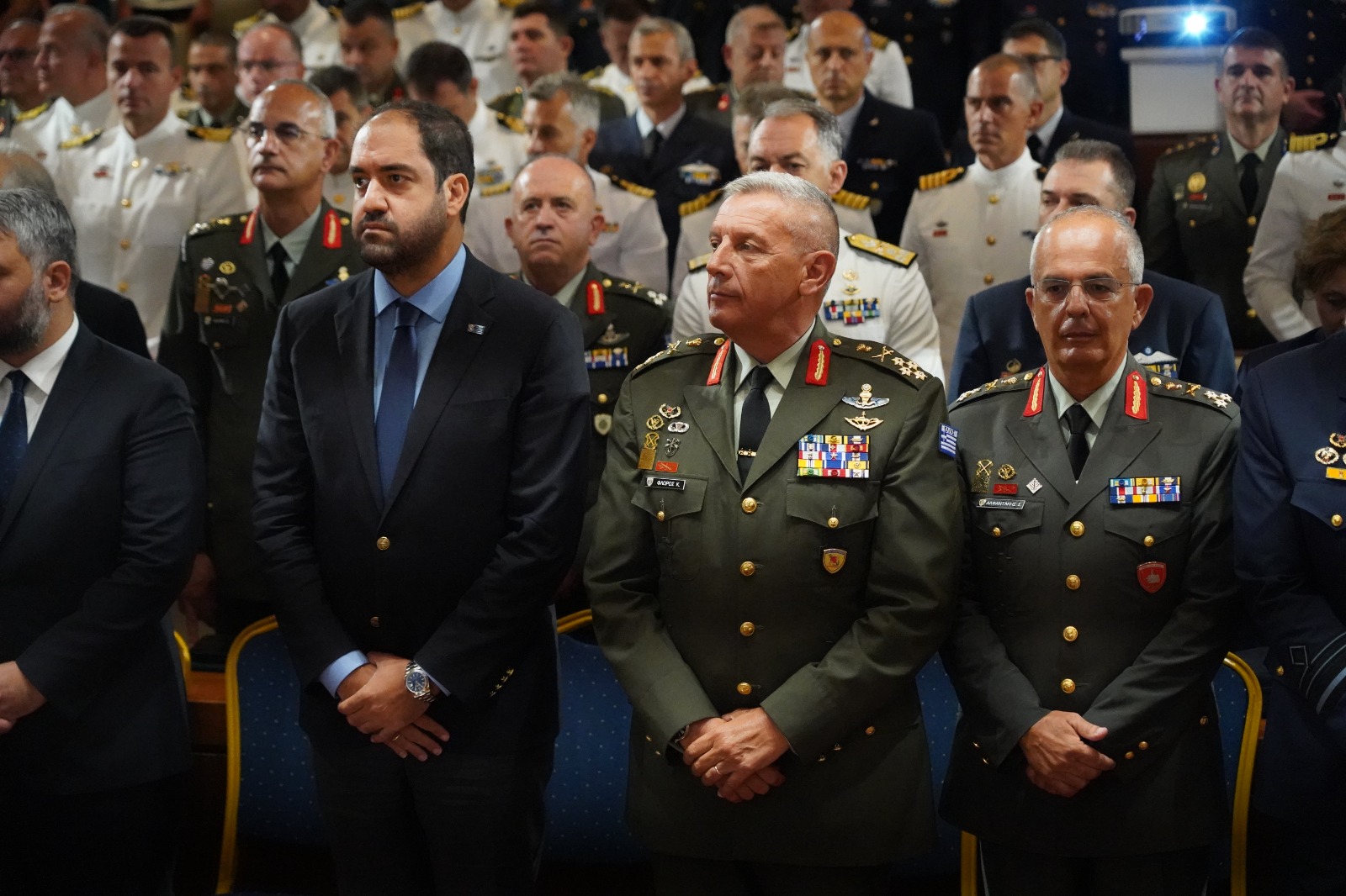 ● Ο Αρχηγός ΓΕΑ Αντιπτέραρχος (Ι) Θεμιστοκλής Μπουρολιάς, ο Αρχηγός ΓΕΣ Αντιστράτηγος Άγγελος Χουδελούδης και ο Αρχηγός ΓΕΝ Αντιναύαρχος Ιωάννης Δρυμούσης ΠΝ.