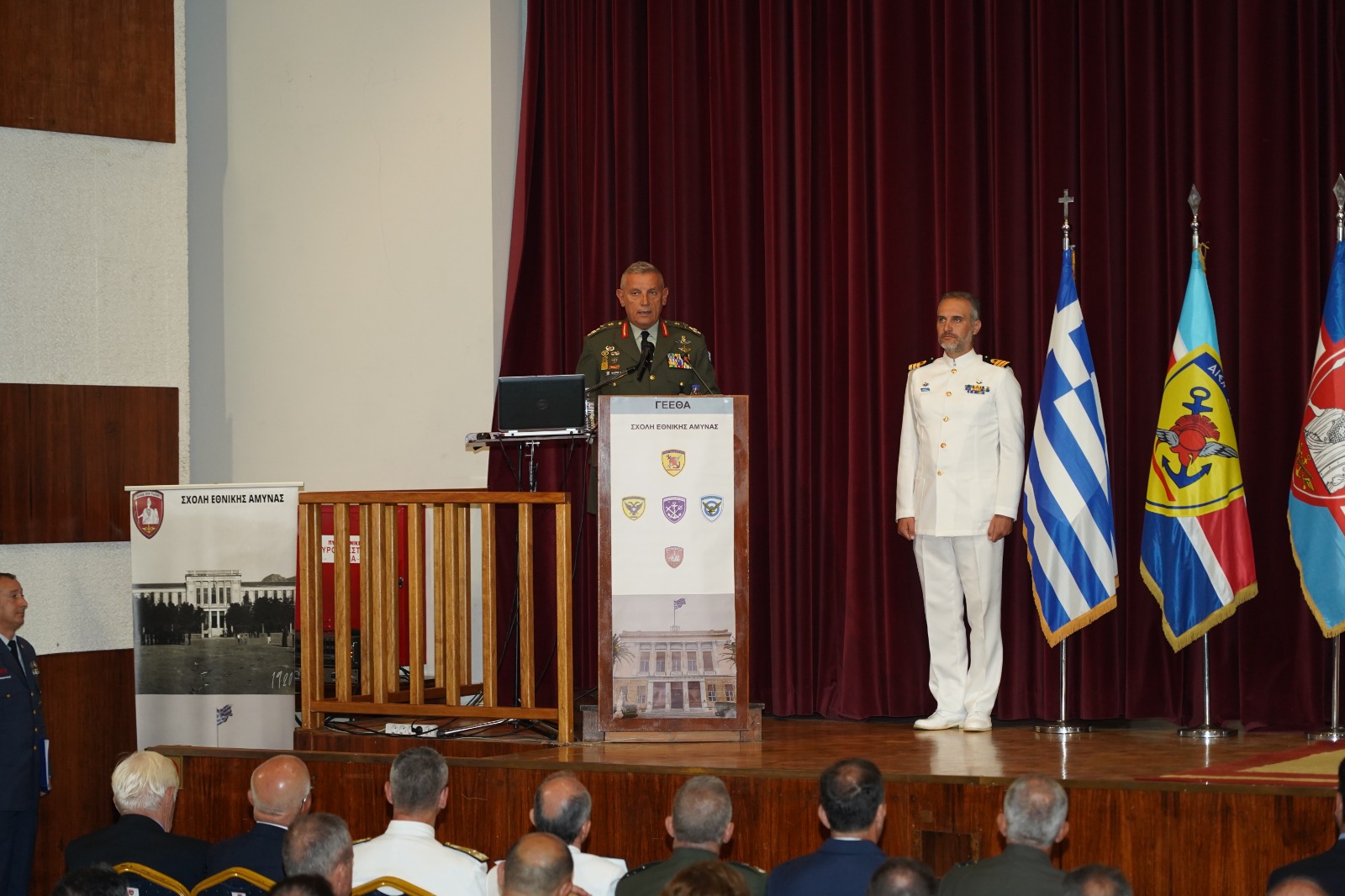 Ολοκληρώνοντας τον χαιρετισμό του, ο Αρχηγός ΓΕΕΘΑ ευχαρίστησε τον Διοικητή, το καταξιωμένο καθηγητικό προσωπικό, καθώς και το προσωπικό της Σχολής Εθνικής Άμυνας για την άοκνη προσπάθεια που διαχρονικά καταβάλλουν, και τους προέτρεψε να συνεχίσουν την προσπάθειά τους, δικαιώνοντας τον τίτλο της Σχολής ως τον κορυφαίο επιστημονικό φορέα στον χώρο των Ενόπλων Δυνάμεων.