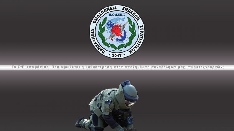 - Η Πανελλήνια Ομοσπονδία Ενώσεων Στρατιωτικών – Π.ΟΜ.ΕΝ.Σ., σε συνέχεια μακροχρόνιων παρεμβάσεών της από το 2018 (σχετ. α και γ), και κατόπιν του (ι) όμοιου εγγράφου της Ένωσης Στρατιωτικών Περιφέρειας Ηπείρου (Ε.Σ.ΠΕ.ΗΠ.), επαναφέρει με έμφαση και αγωνία το μείζον ζήτημα της κατάφωρης θεσμικής και οικονομικής αδικίας, η οποία εξακολουθεί να πλήττει τους Πυροτεχνουργούς του Στρατού Ξηράς, οι οποίοι επιτελούν εξαιρετικά επικίνδυνες αποστολές εξουδετέρωσης πυρομαχικών και εκρηκτικών μηχανισμών.
