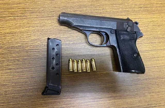 Σε έλεγχο που πραγματοποιήθηκε, στην κατοχή του βρέθηκε πιστόλι με φυσίγγιο στη θαλάμη, καθώς και προσαρτημένος γεμιστήρας με 5 φυσίγγια.