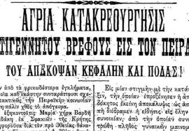 Σαν σήμερα: 1908 – Φρικιαστικό έγκλημα στον Πειραιά. Η γιαγιά Μαρία Παπαδάκη αφού τεμαχίσει το νόθο παιδί της κόρης της, ενώ αυτή βρίσκεταιΔιαβάστε περισσότερα
