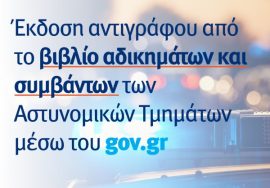 Αντίγραφο από το βιβλίο αδικημάτων και συμβάντων έχουν τη δυνατότητα να παραλαμβάνουν οι πολίτες ηλεκτρονικά, μέσω του gov.gr. Η εφαρμογή τίθεται σε λειτουργίαΔιαβάστε περισσότερα
